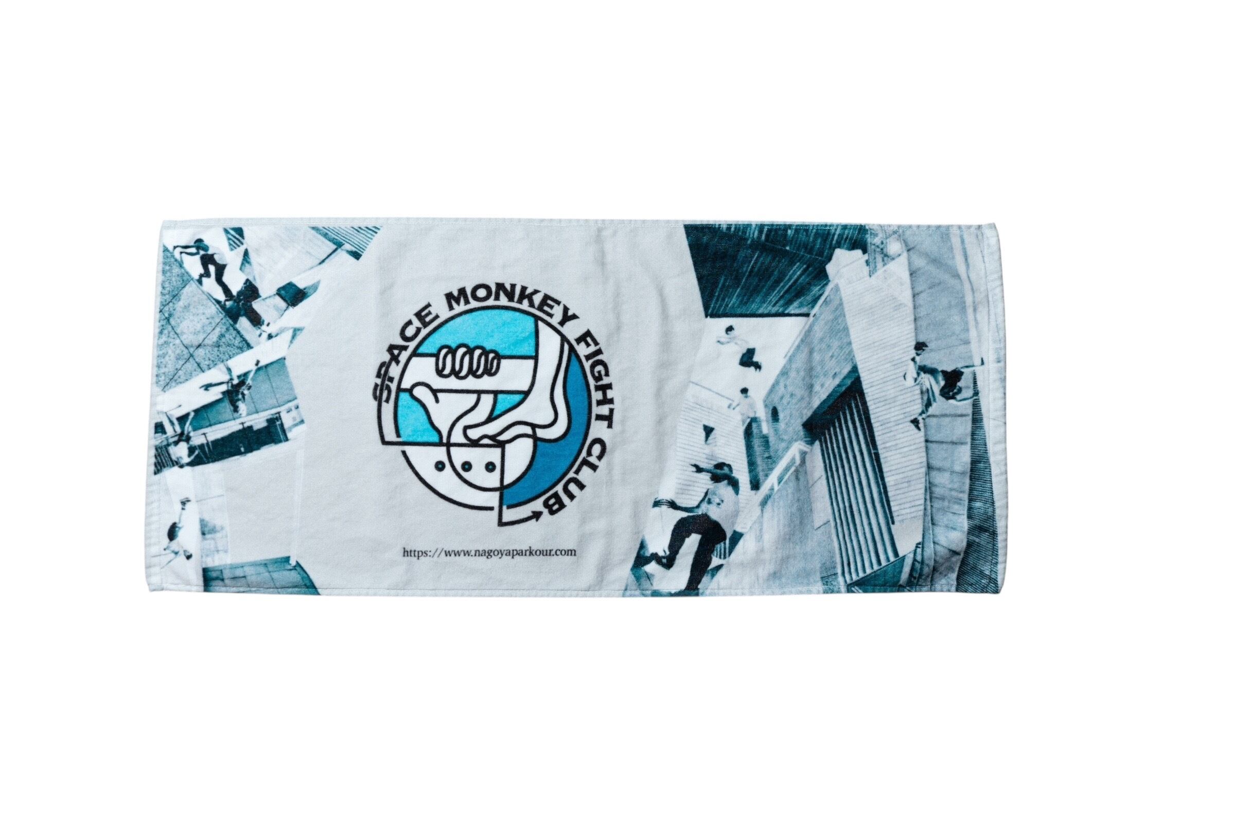 パルクールチームスペモンのロゴとスペモンメンバーがパルクールをしている様子を詰め合わせたタオル。スペモンファン必須の一枚。